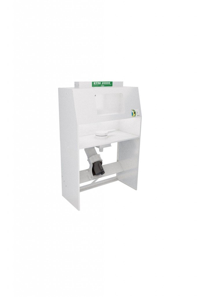 O modelo ETM-2000 proporciona cabine fechada e vidro frontal de inspeção, evitando que o operador fique exposto aos gases gerados pelos produtos de limpeza. Possuí também lâmpada fluorescente interna de 20 W de potência.